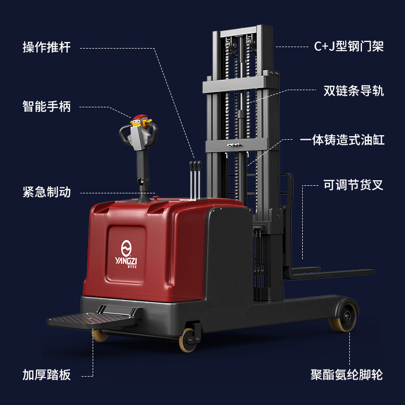 揚(yáng)子電動(dòng)叉車前移式站駕堆高車液壓升降堆垛車CQD-J2050